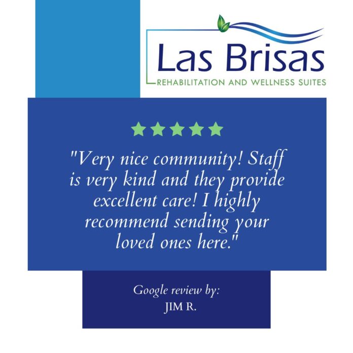 I came in to Las Brisas from a long hospital illness. Very weak and my spirit broken. In 2.5 weeks, my spirits have been lifted and I have been having excellent physical therapy. The nurses and aides have been so kind and professional. I owe them a gratitude of thanks.